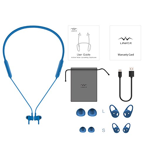 Linner attiva del rumore cuffie Bluetooth 4.1 wireless auricolari sportivi - HD stereo IPX4, a prova di sudore, 13 ore di autonomia, colletto magnetico cuffie con microfono per palestra jogging & Work