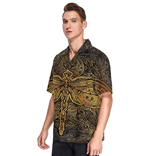 Linomo Camicie hawaiane da uomo Mandala Libellula Design Camicie da spiaggia Camicie estive Button Down Manica corta Manica corta, multicolore, XL
