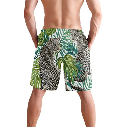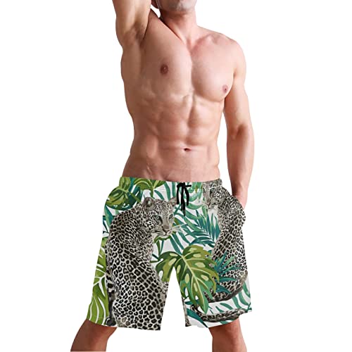 Linomo Pantaloncini da bagno da uomo con foglie di palma leopardo pantaloncini da spiaggia pantaloncini da surf ad asciugatura rapida per gli uomini, multicolore, M