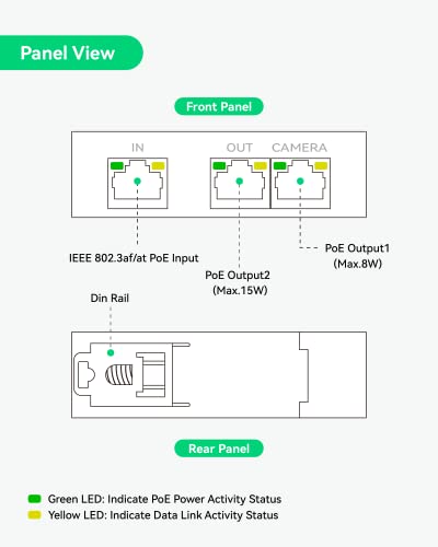 【CONFORME ALLO STANDARD IEEE802.3AF/AT】 Questo extender POE funziona con tutti gli switch POE standard IEEE802.3af/at, iniettori POE o NVR POE. E le uscite POE forniscono alimentazione a dispositivi POE standard, come telecamere di sicurezza IP POE, telefoni IP, AP wireless, altoparlanti IP, ecc. Il consumo energetico consigliato per dispositivo POE è inferiore a 8 Watt e la larghezza di banda massima è 100Mbps.