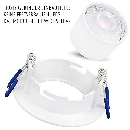 Faretto da soffitto con modulo LED intercambiabile da 5 W e profondità di montaggio extra piatta di soli 35 mm, perfetto per soffitti con poco spazio