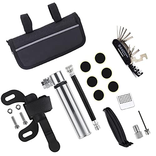 Linsition Borsa di Riparazione per Bicicletta 16 in 1, Pompa per Pneumatici per la casa, per la Bicicletta, Portatile, Accessorio per Bicicletta
