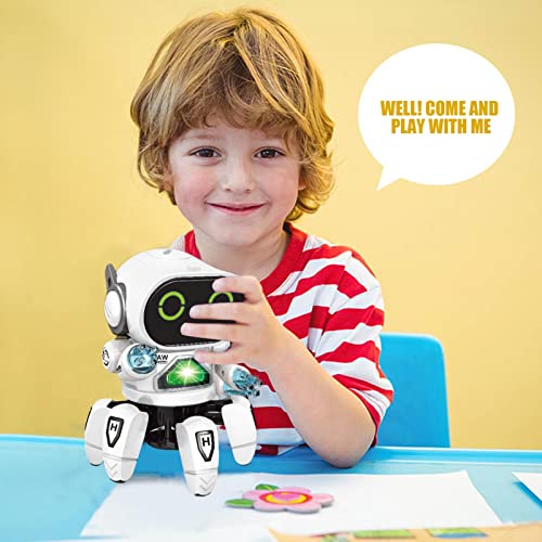♁Luci a LED lampeggianti: il robot a sei artigli può girare a sinistra e a destra mentre balla e canta e il suo corpo brilla di luci colorate. I motori flessibili e potenti assicurano al robot di compiere azioni complicate senza intoppi, simulare le prestazioni umane e promuovere bene l'interazione con i bambini.