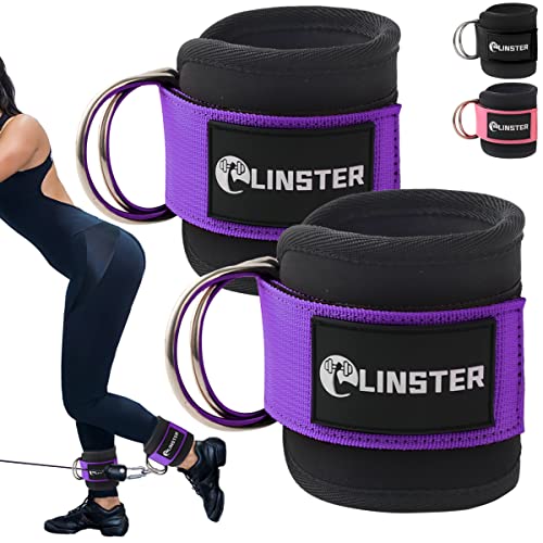 LINSTER 1 Paio Cavigliere Cavi Palestra, Cinghie per Caviglia, Regolabile Fit Neoprene e Doppi Anelli a D, Cinturini alla Caviglia Attacco per Cavi da Palestra per Allenamento Glutei e Esercizi Gambe