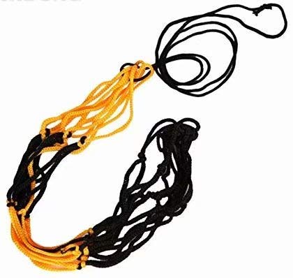 Vantaggi: questa rete è realizzata in filo di nylon intrecciato ad alta densità resistente all'usura con filo giallo e nero. Questo sacco a rete può essere caricato in un pallone da basket, che è una capacità a confezione singola, che è molto adatto per il basket normale.