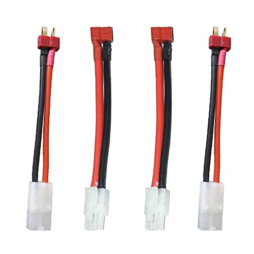 LINSYRC 2 Pezzi Connettore Maschio Spina T Deans a Connettore Femmina Tamiya e 2 Pezzi Connettore Femmina Spina T Deans a Connettore Maschio Tamiya con Cavo 5CM 14AWG