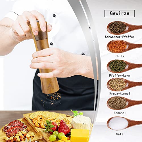 LINTRY Set Macinasale, Macinapepe in Legno e Grinder in Ceramica, Macinaspezie (21.5cm) Regolabile, con Cucchiaio e Pennello per la Pulizia, Regalo Senza Tempo