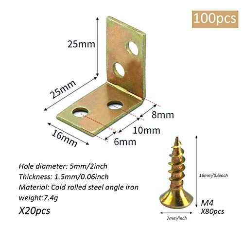 LINVIC 10/20 Pezzi Squadretta di Giunzione Angolare - 25 x 25 x 16 mm 90 Gradi Supporti Angolo Retto Staffe Angolare Staffa Brace Angolo con Viti per Mensola di Legno Tavolo Sedia