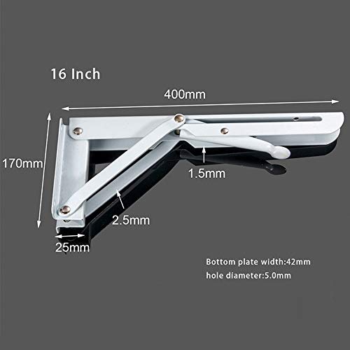 LINVINC Staffa Ad Angolo Retto Ad L Ispessita Da 2 Pezzi, Staffa A Mensola Pieghevole Triangolare In Metallo Bianco,2 Pezzi * 16 Pollici (400 * 170Mm)