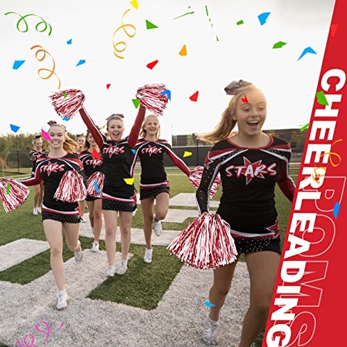 LINYAPRY 24 pon pon metallizzati cheerleading per bambini, pon pon cheerleaders con manico a bastone, fiore a forma di squadra per adulti, sport di squadra e danza (rosso e bianco)