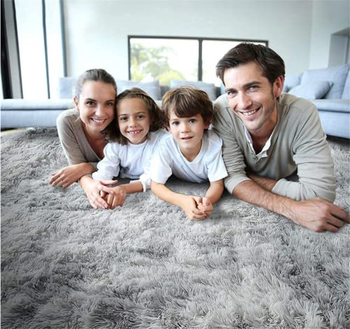 Linyingdian Tappeto peloso morbido e antiscivolo da sala da pranzo e da camera da letto tappeto sfumato (grigio chiaro, 160x200cm)