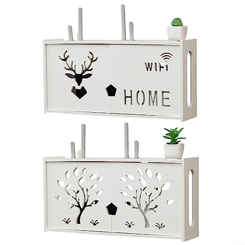 Lioaeust Scatola portaoggetti WiFi da parete, grande rack wireless per router set-top box router rack senza punzonatura scatola portaoggetti doppia porta, 48 x 24 cm (A)