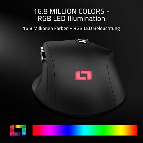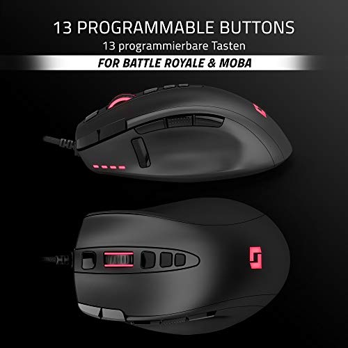 Lioncast Mouse da Gioco LM25 Cablato, Ergonomico, con Sensore Ottico ad Alta Precisione 12000 DPI, 13 Pulsanti Programmabili, Illuminazione LED RGB con 16,8 Milioni di Colori - Accessori di Gioco