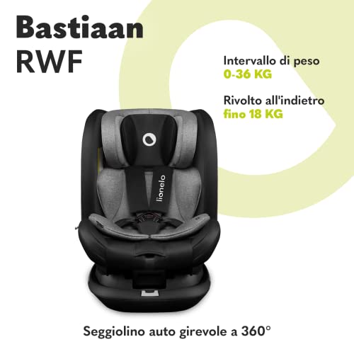 LIONELO Bastiaan RWF Seggiolino auto Girevole a 360 gradi da 0 a 36kg Gruppo 0 1 2 3 Protezioni laterali, Fibbia a 5punti Isofix Top Tether Tettuccio, Opposto al senso di marcia, Regolatzione completa