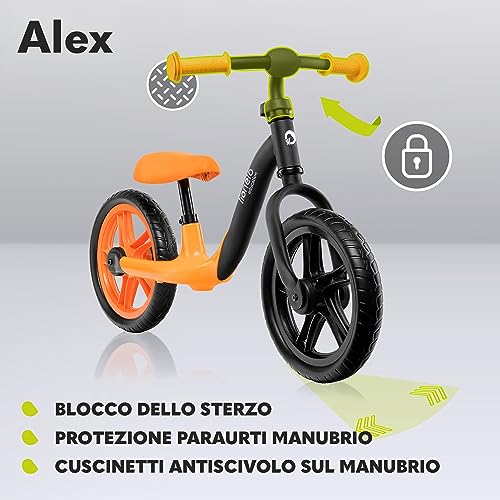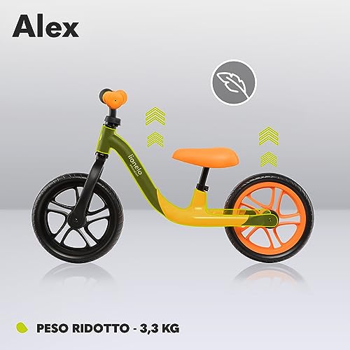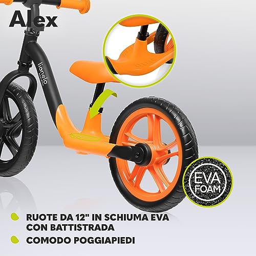 LIONELO Alex Bici senza pedali per bambini da 3 anni fino a 30 kg Leggera e resistente, Ruote in schiuma EVA 12 pollici, Manubrio e sella regolabili, Blocco dello sterzo, Poggiapiedi sagomato Peso 3kg