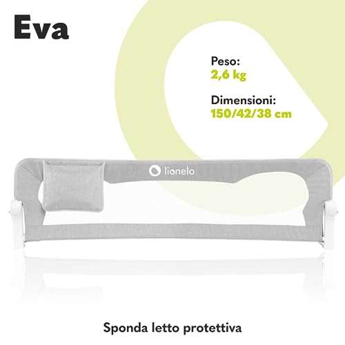Lionelo Eva Sponda letto universale Barriera protettiva per letto 150 cm Installazione facile, 180gradi di reclinazione, Sponda pieghevole con blocco Standsafe Sicura e Tasca, Cancelletto per bambini