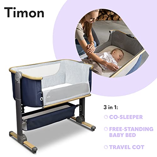 LIONELO Timon 3in1 culla neonato co-sleeping lettino da viaggio pieghevole borsa per il trasporto cesta capiente altezza regolabile parete laterale apribile, grigio (Blu)