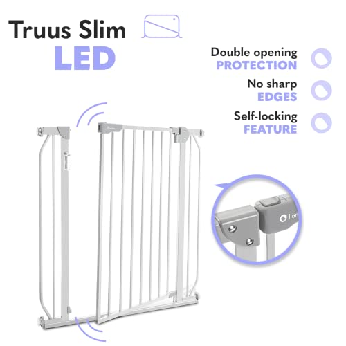 LIONELO Truus Slim LED Cancelletto di sicurezza con luce, Larghezza regolabile da 75 a 105 cm con Fissaggio a Pressione, Alt 77 cm, Apertura entrambe le direzioni, LED con sensore crepuscolo