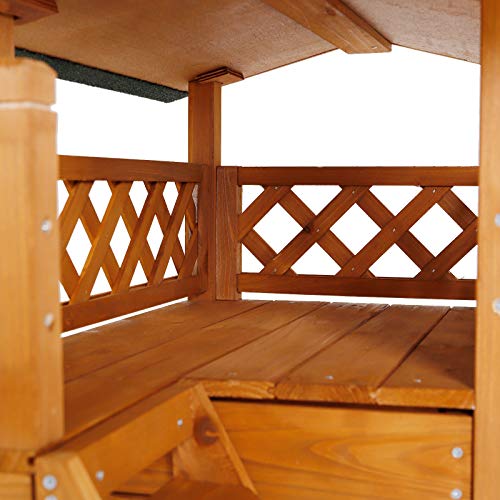 Lionto Casa per Gatti con Veranda E Scaletta, 77x50x73 cm, Natura/Marrone