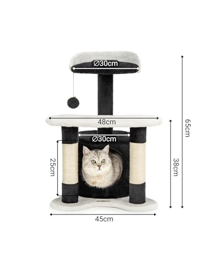 Lionto Tiragraffi per Gatto Albero Tiragraffi Gatto Gioco Giocattolo Gatti Altezza 65 cm, Nero/Bianco