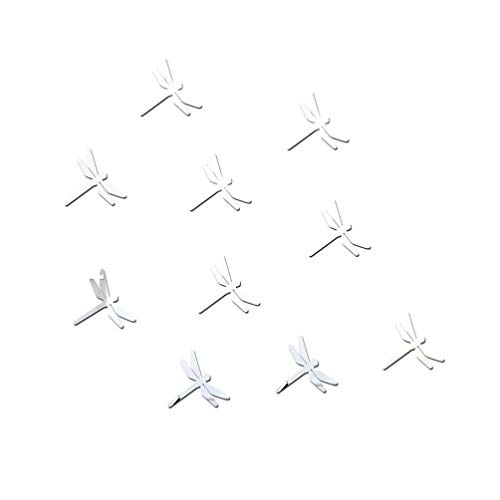 LIOOBO Adesivo Specchio da Parete Specchio Fai da Te Libellula Murales Acrilico Decalcomanie Decorazione per Aula a Casa Ufficio Wall Art Decor (Argento) 10 Pezzi