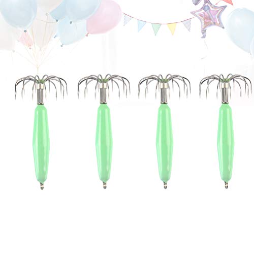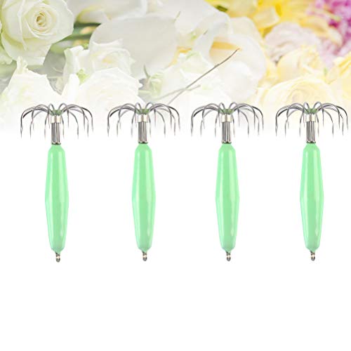 LIOOBO 4 Pezzi 12 Aghi Esche Pesca calamaro in Acciaio Inossidabile Luminoso Esca Pesca Pesca Notturna Esche Ganci per Acqua Dolce Pesca
