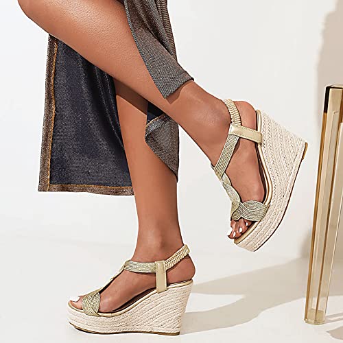 LIPIJIXI Donna's Punta Aperta Espadrilles Dress Platform Sandali Wedge Cinturino alla Caviglia Dress Sandali Platform Fibbia Stylish Wedges Sandali Gold Size 34