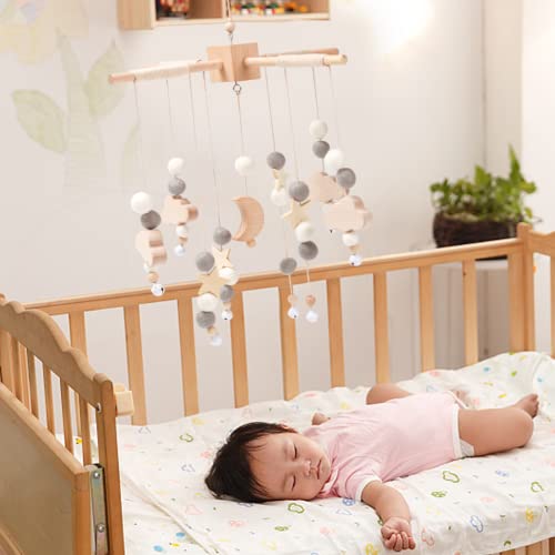 Forma graziosa: giostrina culla neonato è progettato a forma di nuvole, luna, stelle, campanelle e palline di feltro rotonde, con colori naturali tenui e divertenti, in grado di attirare l'attenzione del bambino e di regalargli un divertimento senza fine.
