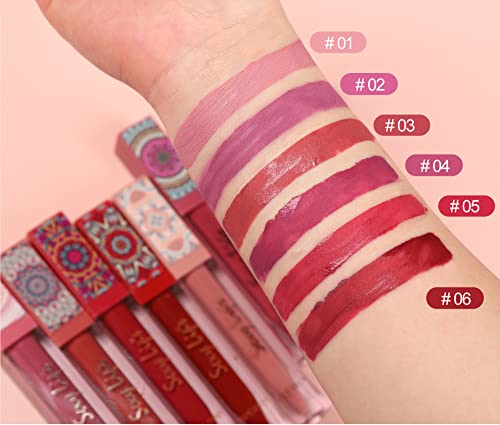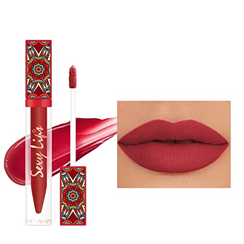 Lipstick liquido opaco antiaderente Matte Lip Gloss Impermeabile Lipstick 24 Hour Last Moisturizing Lip Glaze Non-Fade Highly Pigmented Bohemian Style Velvet Lipstick (#6)