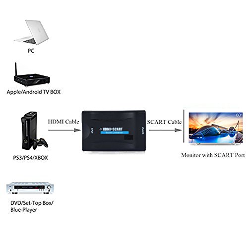 Liqoo HDMI Convertitore Adattatore Scart HDMI Scart TV Televisione Proiettore Supermini Digitale Video Audio Analogico Stereo HDTV PC
