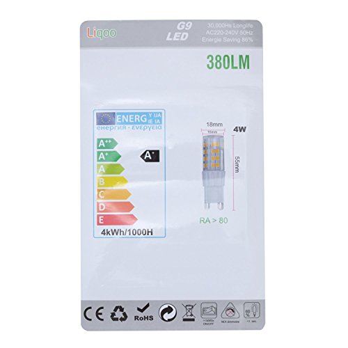 Liqoo 10 x G9 4W LED Lampadina Bianco Naturale 4000K 380lm Raggio Visuale 360 gradi AC 220-240V Pari 35W Lampadina ad incandescenza[Energy Class A+]
