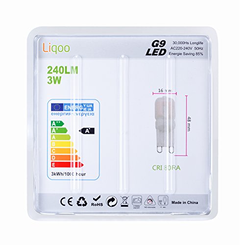 Liqoo 10 x G9 3W Lampadina LED Luce Lampada 240 Lumen Bianco Caldo 3000K Sostituzione 25W Alogena 360 Gradi Angolo a Fascio Plastica Bianca AC 220-240V [Classe Energetica A+]