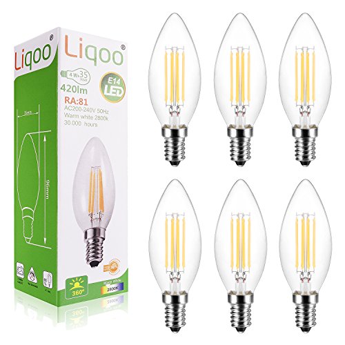 Liqoo 6 x Lampadine E14 a LED da 4W a Filamento Bulbi a Candela Lampadina COB Angolo a Fascio di 360 Gradi Luce Bianca Calda 2800K 420 Lumen Equivalente Incandescente da 35W AC 200-240V