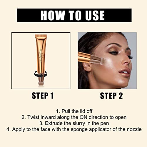 Liquid Contour Beauty Wand,Highlighter and Bronzer Stick with Cushion Applicator Attached, Liquid Face Concealer Contouring, Long Lasting-Waterproof Creates Luminous Complexion