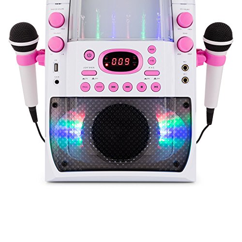 Auna Kara Liquida BT - Impianto Karaoke con Microfono, Cassa Karaoke, Effetti Luce e Acqua, Bluetooth, CD, USB MP3, Uscita Video, 2 Microfoni, Altoparlante Integrato, Bianco/Rosa