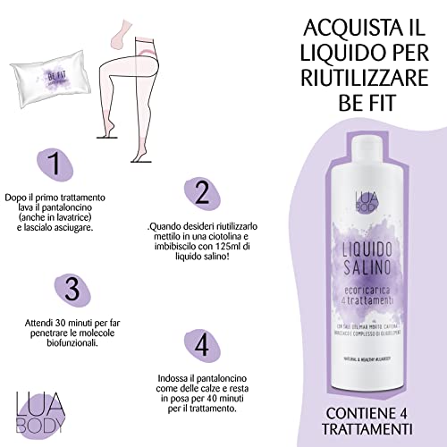 ECORICARICA PER leggins anticellulite BE FIT - per eseguire 4 trattamenti. Lava il pantaloncino e bagnalo con il liquido salino, indossalo e resta in posa per 40 minuti!