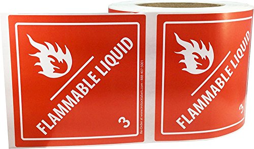 Il liquido infiammabile della classe 3 D.O.T. identifica le etichette adesive quadrate a 4x4 pollici 500