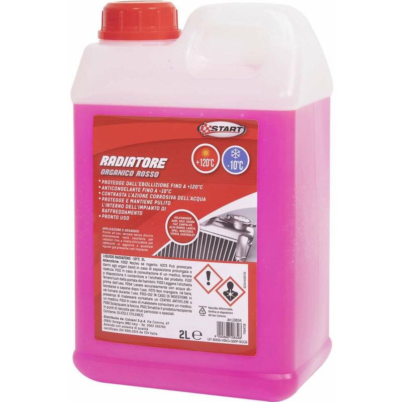Start introduce liquido del radiatore organico rosso da 2 litri con protezione dallebollizione fino a +120grC e con anticongelante fino a -10grC.. Acquistalo subito da CFadda e ricevilo comodamente a casa.