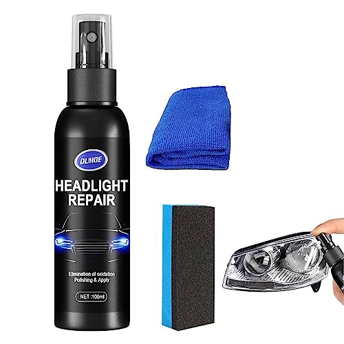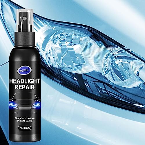 Liquido per riparazione fari, 100 ml Protezione UV Spray liquido per riparazione fari auto, Detergente lucidante per lenti antigraffio, Liquido per ripristino fari auto per ripristino finestrini, Luci