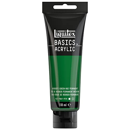 LIQUITEX 8870044 Basics - Pittura acrilica, Pigmenti per artisti monopigmentati, Resistente alla luce, durevole nel tempo, Finitura satinata, Tubo da 118 ml - Verde Di Hooker Imitazione