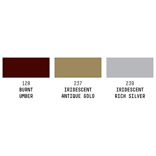 Il set contiene 3 Paint marker: Argento ricco iridescente, Oro antico iridescente, Terra d'ombra bruciata