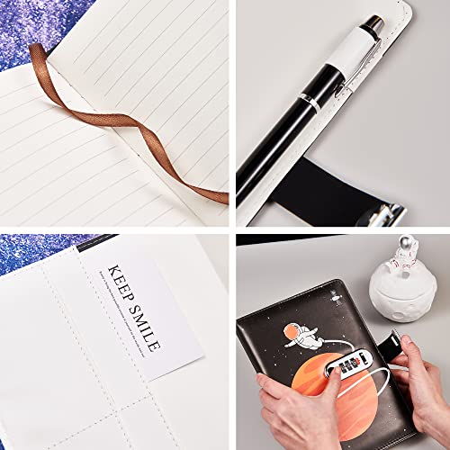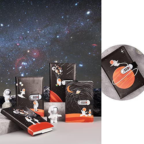 Lirener Creative Diario in Pelle con Lucchetto a Combinazione (Viaggio Spaziale), A5 Diario con Password segreta Diario Blocco Note Manuale Sketchbook Agenda giornaliera Agenda, 145x210mm