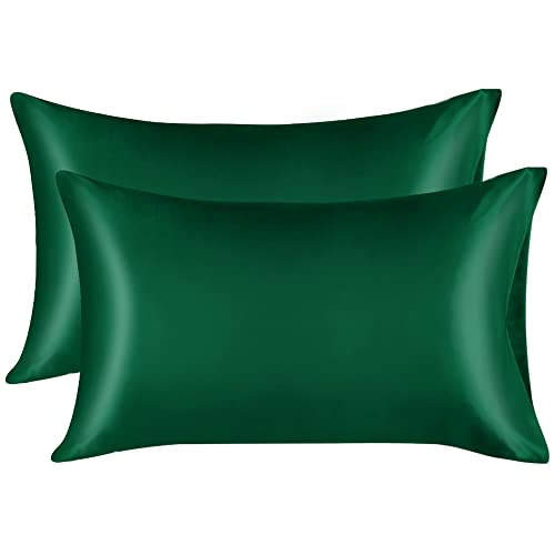 Lirex Set di 2 Federe in Raso 40x60cm, Protezione Capelli e Pelle & Antirughe, Chiusura a Busta,(Verde)