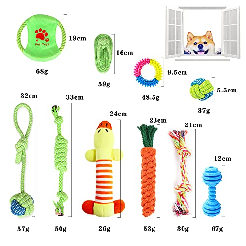 LiRiQi Giochi Cane, 12 Pezzi Giocattoli per Cani Cotone Naturale, Giocattoli da masticare, Giocattolo di Corda da Masticare per La Pulizia dei Denti per cani di taglia piccola e media