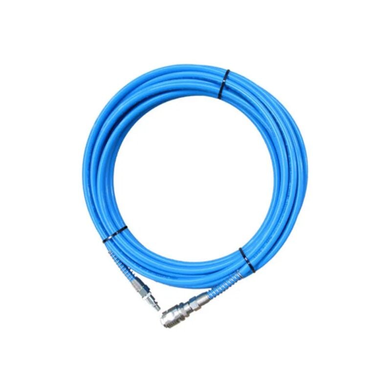 Tubo in poliuretano ad alta resistenza per aria compressa con attacco rapido per collegamento dal motocompressore all'attrezzo pneumatico. Matassa da 20 metri di lunghezza con diametro 7.5x10 mm compreso di un raccordo maschio e uno femmina. Caratteristiche tecniche Lunghezza: 20 mt Misura: 7.5x10 mm Raccordi: 1 maschio - 1 femmina