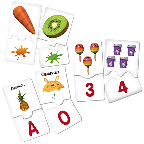 Cartone resistente con puzzle e giochi di logica, primi numeri e vocali, con giochi di associazioni e giochi di memoria