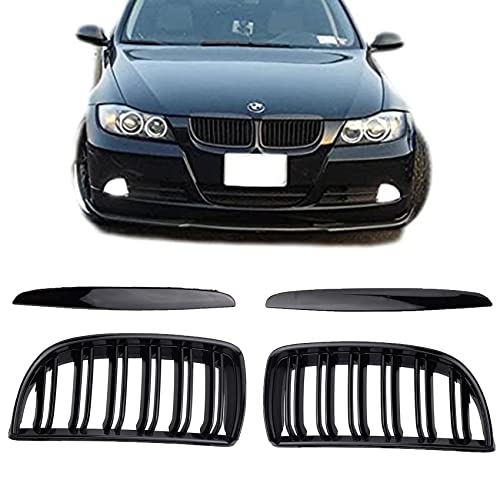 Liseng Front Kidney Grille Hood Grills - Doppia linea per E90 323I 328I 335I 330I 325I 3 Series 2005-2008 (GllNzend nero)