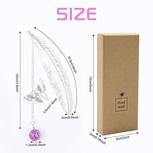 Lishang Segnalibro in Metallo Piuma con Farfalla 3d Perle di Vetro Ciondolo Eterno Fiore Secco Vetro Vintage Segnalibro Ciondolo Argento Lettori Donne Ragazze Amici Compagni Studenti Regalo