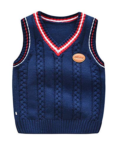 Lishui Gilet A Maglia da Bambini Ragazze Ragazzi Scollo A V Maglioni Senza Maniche Blu Zaffiro 110 Adatto ad Altezza: 110CM