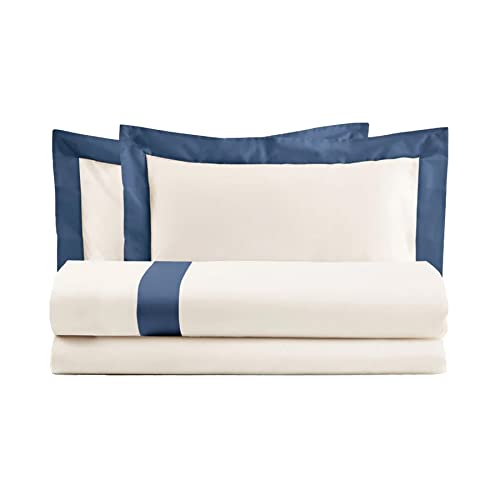 Lisola Set Copripiumino una Piazza e Mezzo in Cotone Pregiato, con Bordo in Raso, Morbido, Sacco Copripiumino 200x240cm + Lenzuolo da Sotto 120x200x30cm + 1 Federa 50x80cm. Modello: Diamante